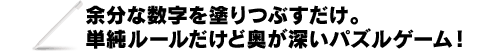 タテヨコの列に、同じ数字が重複しないように、余分な数字を塗りつぶしていくだけのとても単純なルールのパズルです。