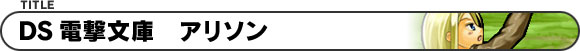 文庫を読んだ人も、まだの人も、絶対楽しめるニンテンドーDSのサウンドノベル『アリソン』。電撃文庫のストーリーがグラフィックとBGMで臨場感あふれる演出で楽しめます。キャラクターのイラストはもちろん小説そのままの風景イラストも多数収録。頭の中で思い描いていたシーンが液晶画面によみがえります。