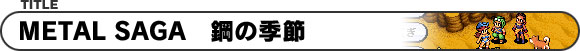 | 戦車に乗ってモンスターを倒せ!君は世界各地の凶悪なモンスターを退治する賞金稼ぎだ。稼いだ賞金で戦車を改造し、より強力にパワーアップしよう!かつて父が倒した巨大電子頭脳ノアの復活を阻止すべく、メカと生物が融合したモンスターがうろつく世界へ旅立つことになる!主人公とともに旅をする仲間は、戦車修理が得意なメカニック。肉弾戦が得意なソルジャー。料理で仲間を助ける料理人。コンピュータの専門家ハッカー。そして、バイオ犬ポチ!ニンテンドーDSならではのフルタッチペンオペレーションで贈るRPG。大人には懐かしく、子供には新しい。そして若者の野心を刺激する広大な砂漠の物語「メタルサーガ 鋼の季節」登場! |