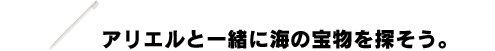 ディズニーの名作アニメーション「リトル・マーメイド」の世界を題材にしたアドベンチャーゲームです。プレイヤーは主人公の人魚姫「アリエル」になって、困っている海の仲間たちを助けていきます。フランダーやセバスチャンなどおなじみのキャラクターが多数登場し、神秘的で美しい海底の探検を盛り上げます。ゲームの舞台となる「レインボーリーフ」では原因不明の悪天候が続いて仲間たちが困っています。アリエルは友達を助けるために、ミッションをひとつひとつ解決していきます。