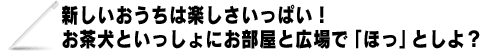 お茶犬たちの遊びの舞台が、「お部屋」を飛びだし「外」に広がった!広場に出たお茶犬たちは、プレイヤーが自由に動かして遊ぶことができます。