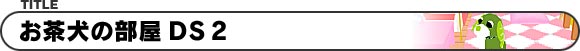 大人気お茶犬シリーズ最新作「お茶犬の部屋DS2」がついに登場!カワイイお茶犬に触ったり、ミニゲームで遊びながらお部屋を作ろう。