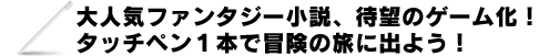 ゲームの操作はすべてタッチペン1本で行い、敵をタッチして攻撃、弾いてダッシュ攻撃など、爽快なアクションを直感的な操作で楽しむことが可能。また、冒険、バトル、謎解き、収集要素と、RPGの王道たる要素を凝縮し、原作ファンはもちろん純粋なRPGファンにも楽しめる内容となっている。