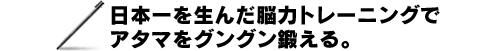 記憶力・想像力・集中力・瞬間視力を鍛えるぞ。ペンで「なぞって」「わって」「かいて」「まわして」脳を刺激する5種類のトレーニングと、そろばんの基礎から暗算まで体系的に学べる6種類のトレーニングを収録。