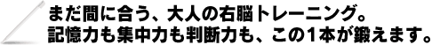 記憶力を高めたい人も、カンを高めたい人も、脳の健康が気になる人も、この1本で気軽に脳を鍛えることができます。