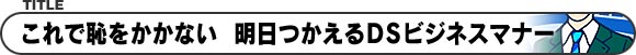 「これで恥をかかない明日つかえるDSビジネスマナー」は、これから社会に出ようとしている人、すでに社会人として働いている人が、社内や社外などの何気ないビジネスシーンで恥をかかないために、知っておきたいマナーや知識を身につけることのできるビジネスライフトレーニングソフトです。