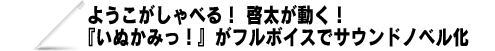 アニメ&小説で大人気の『いぬかみっ!』がフルボイスでサウンドノベルになった。ボイスはもちろん、堀江由衣さんや福山潤さんなど、アニメの声優が担当。イラストもアニメで使用されたグラフィックを使用。臨場感あふれる演出で、ドタバタラブコメディが楽しめます。シナリオは、原作の有沢まみずさんが担当。文庫でも人気の3本の小説に、書き下ろし1本を加えた4エピソードを収録しています。