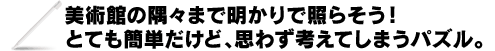 「美術館」は、美術館の中に、照明を置いていき、美術館の隅から隅までを明るく照らし出すパズルゲームです。