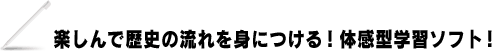楽しんで学んで自然に身につく5種類の学習問題やオモシロい語呂合わせやイラストつきで分かりやすい歴史辞典などを収録。