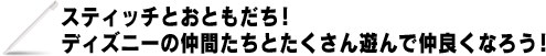 スティッチ、くまのプーさん、シンバ、ドリーが君が遊びにくるのを待っているよ。