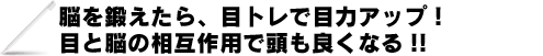 そこで、ドクター・オブ・オプトメトリーの内藤貴雄先生が研究されているビジョン・トレーニングで「ゲームで見る力を鍛える、目と脳の相互作用で頭もよくなる」トレーニングを行います。目の動きの能力や瞬間的な見る力など4種類のトレーニングをおこなうので、スポーツなどにも効果的!問題数も40種類と豊富なので、気軽に楽しくトレーニングできます!!
