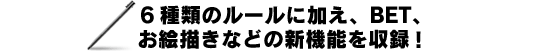 | BET&お絵描き機能搭載!順番の待ち時間で、相手がボールをいくつ落とすか等の賭けをしたり、タッチ機能を使ったイタズラ書きが可能!キャンパスは他のプレイヤーと共有するので、プレイのアドバイス、はたまた名画が生まれるかも! |