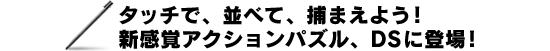 | タッチパネルでの操作によって、快適さ、テンポの良さ、ドキドキ感も更にアップしました。ZOO KEEPERの本来の楽しさを心ゆくまで楽しめます。シリーズ初の2P対戦モードを搭載。 |