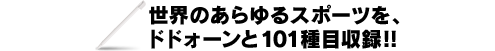 テニス・ビーチバレー・ボクシングなど誰もが知っているスポーツから、ナマズを捕まえる「ヌードリング」や、丸太を斧で割る「アイスコラリ」などの珍しいスポーツまで、世界中から集めたあらゆるスポーツをミニゲームとして収録。しかもその数はなんと101種類! 操作には主にタッチペンを使用。難しい操作もないので、誰にでも簡単に楽しむことができます。すべての競技をクリアして、目指すはトップアスリート! |
