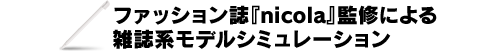 新潮社の中学生No.1ファッション誌『nicola』の全面監修。コーディネートや掲載記事のプロデュースを手がけていく雑誌系モデルシミュレーション。