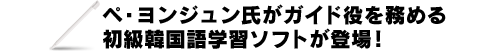 また、起動時や日々の挨拶をペ・ヨンジュン氏の映像や音声で楽しむことができ、学習のご褒美として、ミニゲームやヨンジュン氏の撮りおろし写真もあり、飽きずに学習を進めることができます。 |