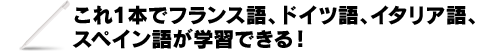 1本でフランス語、ドイツ語、イタリア語、スペイン語の4ヵ国語が学習できて、さらにそれぞれの言語のボリュームもたっぷり! |