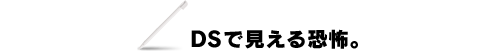 DS本体を縦に持つ「現実」と横に持つ「呪いのゲーム」という2つの異なる操作を楽しめる。縦持ちの左画面(左目)にしか見えないナニかを探すアドベンチャー要素。横スクロール・アクションの絶妙な難易度。リアルな音の恐怖。 |