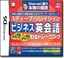 ビジネス英会話のDS決定版!『スティーブ・ソレイシィのビジネス英会話ペラペラDSトレーニング』は、ビジネス英会話の極意を単純明快に解説し、英会話トレーニングをすることができます。ビジネスシーンに必須の英会話フレーズやNGフレーズを短時間で効率良く学習するためのソフトです。 |