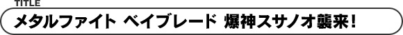 伝説のベイ「スサノオ」をめぐる、新たなベイバトルRPGがここにはじまる! スサノオを操る悪しきブレーダー、タケルの野望に銀河たちはどう立ち向かうのか!? 3vs3のチームバトルシステムを搭載。自分だけのオリジナルチームをつくろう! 新世代ベイブレード、新必殺転技、ベイフォースを駆使して、最強のブレーダーをめざせ! |