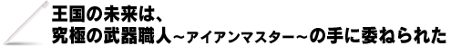 中世ファンタジーの世界を舞台にした経営シミュレーションゲーム。プレイヤーは武器職人となって数多くの武器や防具を作って販売し、伝説の武器職人(アイアンマスター)を目指します。武具の材料となるアイテムを入手するために傭兵を雇い、ミッションをクリアしていくと同時にさまざまなイベントが進行するRPGとしてのストーリー性も重要な要素です。