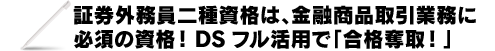 証券外務員二種資格は、証券会社や銀行などで、株式や有価証券の勧誘や販売などの金融取引業務に携わるために必須の、“金融商品取引法”で定められている公的資格です。金融機関就職希望の方、投資の基本知識を身につけたい方がたくさん学習しています。『マル合格資格奪取!』では、このソフトならではの機能によって時間を有効に使い、毎日少しずつ積み重ねる学習が可能です。