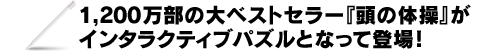 あの1,200万部の大ベストセラー『頭の体操』がDSで進化!インタラクティブ・ひらめきパズル!タッチペン操作で各集400問を超える謎解き体験!第4集は、現在、過去、未来とそれぞれの時代に存在する天才たちの謎に挑戦! |