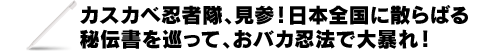 いろんなおバカ忍法で秘伝書をねらう忍者軍団と戦いながら、日本全国を大冒険だ! |