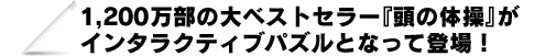 あの1,200万部の大ベストセラー『頭の体操』がDSで進化!インタラクティブ・ひらめきパズル!タッチペン操作で各集400問を超える謎解き体験!第1集は、地球のあちこちに隠された「謎」を見つける“謎解き世界一周旅行” |