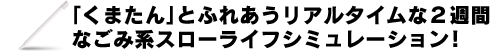 クマを擬人化したかわいいキャラクター「くまたん」にちょっかいを出したり、アイテムを利用したりして反応を楽しむゲームです。あなたは「にぎわい動物園」に預けられた「くまたん」の飼育員となり、2週間の間だけ「くまたん」と過ごすことになります。はたして「くまたん」はどんなコに育っていくのでしょう?