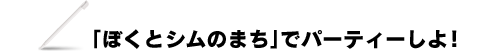 シムたちともっと遊びたい、そんなキミにピッタリなソフトが登場だよ!シムたちがミニゲームをしゅさいする「フェスタ」が開かれることになった!さあ、シムたちと一緒にパーティーをはじめよう!