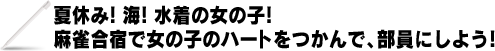夏休みに部員勧誘をかねて、海で合宿を催したら、ひょんなことから5人の女の子達が参加してくれたのだ!!