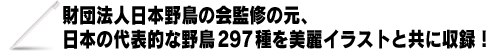 代表的な野鳥297種の特徴を精彩に表現したカラー図版とともに、