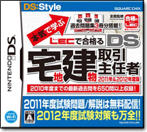 資格学習ソフトの定番『LECシリーズ』の9作目は、大好評の『DS宅地建物取引主任者』の2011年&2012年度対応版。2010年度試験を収録したほか、ユーザーからの要望があった途中セーブ機能や、免除科目の設定機能、問題検索機能やメモ機能など、学習に役立つ便利な機能も追加されています。1200問を収録し、最重要問題を厳選して出題する「毎日学習」、650問以上を収録し、分野や重要度を絞って過去問を学習できる「実戦学習」、30分間で15問を出題し、簡易模試で自分の実力がチェックできる「実力テスト」の3モードを搭載。ユーザーの合格を助けます。 |
