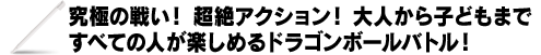 複雑な操作はなく、シンプルなボタン操作で迫力の攻防が楽しめる『ドラゴンボール改』の格闘アクション。コマンド入力が苦手なプレイヤーにおすすめのタッチスクリーン操作で、必殺技もらくらく発動。究極技を発動すると、ミニゲームで勝負。敵に打ち勝ち、ド迫力の演出を見せつけろ!