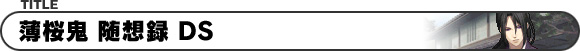 『薄桜鬼 随想録』がニンテンドーDSに登場。すでにプレイされている方はもちろん、プレイされていない方にも楽しめる新要素が追加されています。『薄桜鬼』本編を愛する方々が、よりキャラクターや世界観に浸るためのマストアイテムとして、本編では描くことのできなかった「歴史の狭間」を描きます。プレイヤーは主人公・雪村千鶴となり、新選組隊士たちとともに辿った道を追想しながら「そういえばあのとき実はこんなことがあった」と“思い出す”ことでエピソードを増やし、ストーリーを追っていきます。 |