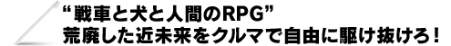 涙と笑い、出会いと別れ、奇想天外な「WANTEDモンスター」、そしてさまざまなクルマと仲間が荒野と化した近未来でキミを待っている! |