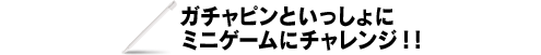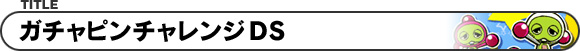 ガチャピンは、スポーツをしたり乗り物に乗ったりと、さまざまなことにチャレンジしてきたね。そんなガチャピンのチャレンジ魂を、プロデューサー“ガチャピン”自らゲームにしたのが、この『ガチャピンチャレンジDS』なのだ。カーレースやスポーツなど、ガチャピンが実際にチャレンジしたものをミニゲームで遊ぶことができるんだ。さぁ、キミもガチャピンと一緒にチャレンジ!! |