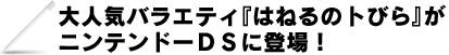 フジテレビ系列にて放送の大人気バラエティ『はねるのトびら』が、ニンテンドーDSに登場!