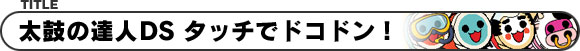 ソフトを買うと必ずついてくる太鼓の達人DS専用タッチペン「バチペン」をバチのように両手に持って、リズムにのって太鼓をタッチするカンタン☆オモシロ音楽ゲームだよ!