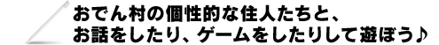 プレイヤーは、おでんくんになって「おでん村」に住んでいる住人たちとお話をしたり、ミニゲームをしたりして一日を過ごす「おでん村アドベンチャー」だよ。