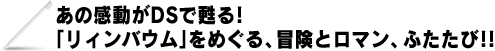 もちろんDSならではの新機能も搭載、初めてプレイする人はもちろん、既にプレイしたことのある人にも胸躍る新しい冒険を提供します。 |