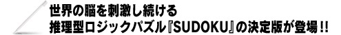シンプルなルールなのに奥が深い! 一度はじめると止まらない! 数字を頼りにマス目を埋める、推理型ロジックパズル『SUDOKU(数独)』。