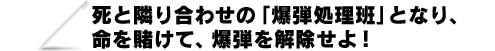 爆弾の解除方法はコードの切断をはじめ、パズルを解く、音を使うなど、爆弾の種類によって大きく異なる。回路を見誤って間違った処理をすると、爆発してゲームオーバーとなってしまうので注意!タッチペンを駆使して、ネジ外し、レーザーカッター、透視スコープなどを使い、切断すべきコードを的確に見極めよう。タッチペンを握った時から、極限の緊張感がキミを包み込む! |
