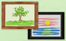 完成した絵は、DSカード内のメモリーに80枚程度保存でき、 好きなフレームを選んで入れることもできます。 (作成途中の絵は、中断データとして レッスン作品3つ・フリーペイント作品3つまで保存できます。)