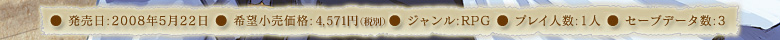 ●発売日:2008年5月22日 ●希望小売価格:4,571円 ●ジャンル:RPG ●プレイ人数:1人 ●セーブデータ数:3