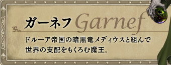 ガーネフ ドルーア帝国の暗黒竜メディウスと組んで世界の支配をもくろむ魔王。