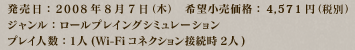 発売日:2008年8月7日(木) 希望小売価格:4,571円(税別) ジャンル:ロールプレイングシミュレーション プレイ人数:1人(Wi-Fiコネクション接続時2人)