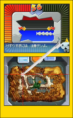 カセキがある程度見えてきたら、ドリルに持ちかえ、ゆっくりと岩を取りのぞいていきます。けずりカスがたまってきたら、息をふきかけてきれいにできます。ドリルは少しずつけずるので細かい作業にむいています。もちろん、けずりすぎるとカセキをいためてしまいます。