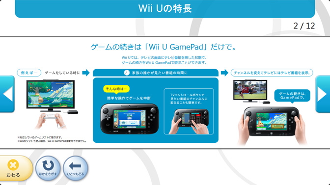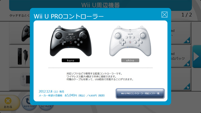Wii U、Wii、ニンテンドー3DSの基本情報をはじめ、Wii U、Wiiのコントローラー・周辺機器などを紹介しています。